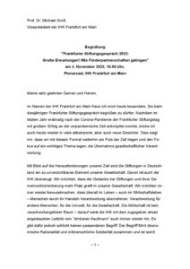 Sie erfüllen damit erst ihre Bestimmung als gemeinnützige Stiftungen. Dabei ist es wichtig, dass sich eine Förderpartnerschaft unter wandelnden gesellschaftlichen Rahmenbedingungen bewährt. Aber wie kann dies gelingen? Wie geht gutes Fördern? Wie finden Förderpartnerinnen und -partner zueinander? Was können beide Seiten voneinander lernen, und was beitragen zu ihrer jeweiligen Entwicklung? Diesen Fragen möchten wir im diesjährigen Frankfurter Stiftungsgespräch nachgehen und mit Ihnen in Dialog gehen.