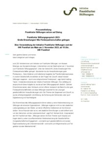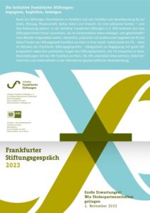 Viele Institutionen und Initiativen in Frankfurt werden von Stiftungen durch Förderungen unterstützt, ermöglicht und mitgestaltet. Doch diese Beziehungen sind nicht einseitig, sie bedingen sich gegenseitig. So verwirklichen die allermeisten Stiftungen ihre Satzungszwecke, indem sie Projekte oder Programme anderer gemeinnütziger Einrichtungen finanziell fördern.
