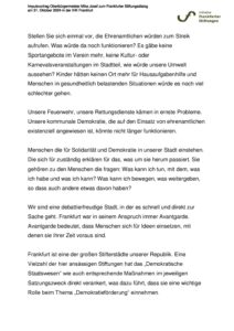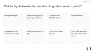 Astrid Kießling-Taşkin, Vorstandsvorsitzende der Initiative Frankfurter Stiftungen, unterstreicht: „In Zeiten, in denen demokratiefeindliche und radikale Strömungen zunehmen, ist es umso wichtiger, dass wir als Stiftungen und Förderpartnerinnen und Förderpartner geschlossen zusammenstehen, um unsere Demokratie aktiv zu gestalten und gesellschaftliche Teilhabe zu stärken.“